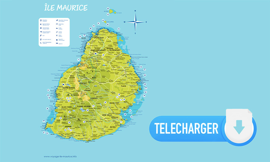 Avoir en sa possession une carte de l’île Maurice est indispensable pour organiser au mieux votre séjour de vacances à l’île Maurice. Localisation des hôtels à l’île Maurice, lieux touristiques majeurs à visiter à Maurice, excursions aux quatre coins de l’île Maurice et activités à pratiquer durant votre voyage à l’île Maurice, la carte grand format en PDF qualité imprimeur (300 DPI) à télécharger ici est votre meilleur atout pour aller à la découverte de cette île paradisiaque.
